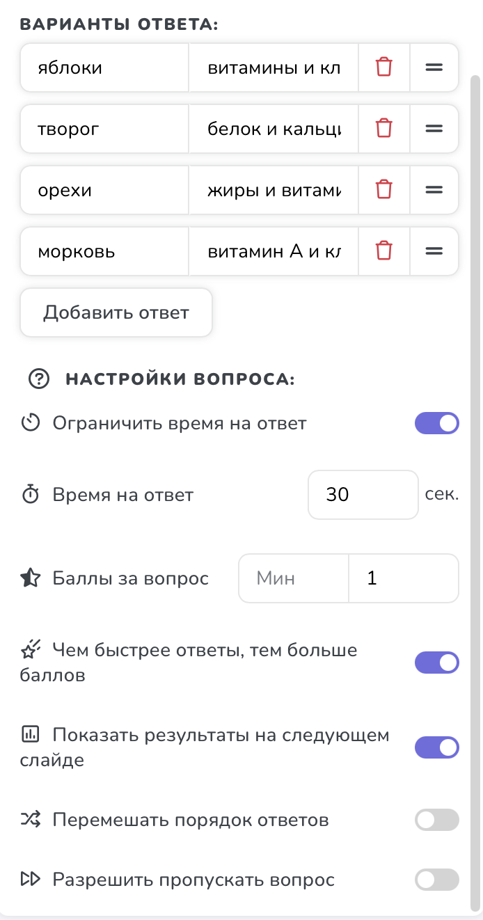 Настройки вопроса